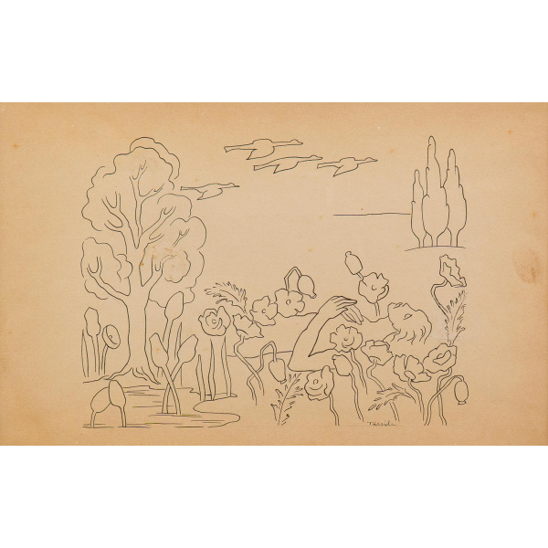 Artista Tarsila do Amaral Título Paisagem onírica com mulher Técnica Nanquim sobre papel Ano 1950 Década 50 Século 20 Dimensões 33 cm x 21 cm Descrição Assinado canto inferior direito - 21 x 33 cm. Registrada no projeto sob o tombo DI370, reproduzida no Catálogo Raissoné Tarsila do Amaral, vol. III, pág. 110. Participou da exposição “Tarsila: desenhos de 1922 a 1952”, Ricardo Camargo Galeria e Studio José Duarte de Aguiar, São Paulo, 1987.- Texto transcrito do catálogo do leilão. - Esta obra entrou em leilão com o lance inicial de R$60.000,00 - Crédito da imagem: https://www.iarremate.com/blombo/074/39 Avaliação da Obra Somente para Assinantes Fonte de Pesquisa Somente para Assinantes Data da Pesquisa 13/12/2025