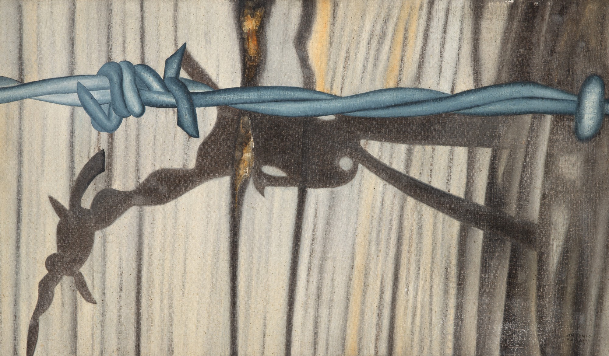 Artista Antonio Henrique Amaral - Antonio Henrique Abreu Amaral Título Arame Farpado Técnica Óleo sobre Tela Ano Década 70 Século 20 Dimensões 89 cm x 50 cm Descrição Antonio Henrique Amaral Arame Farpado 50 x 89 cm óleo sobre tela assinatura inf. dir. 1971 -Crédito da imagem: https://www.leilaodearte.com/leilao/2026/marco/286/antonio-henrique-amaral-arame-farpado-39502/ - Texto transcrito do catálogo do leilão. Avaliação da Obra Somente para Assinantes Fonte de Pesquisa Somente para Assinantes Data da Pesquisa 02/03/2026
