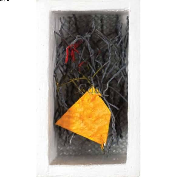 Arame galvanizado, zinco, tinta acrílica e madeira