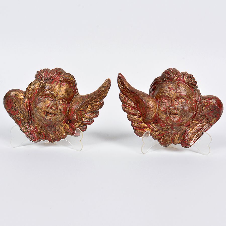 Artista Não informado Título Sem Título Técnica Objeto Século 19 Descrição Lindo par de pequenas cabeças de anjos no estilo barroco em monobloco de madeira com policromia vermelha sob douração de época. Séc. XIX. Alt. 12 cm -Crédito da imagem: https://br.dagsaboya.com.br/peca.asp?ID=27903219&ctd=1&tot=&tipo=&artista= - Texto transcrito do catálogo do leilão. - Esta obra entrou em leilão com o lance inicial de R$3.000,00 Avaliação da Obra Somente para Assinantes Fonte de Pesquisa Somente para Assinantes Data da Pesquisa 03/11/2025