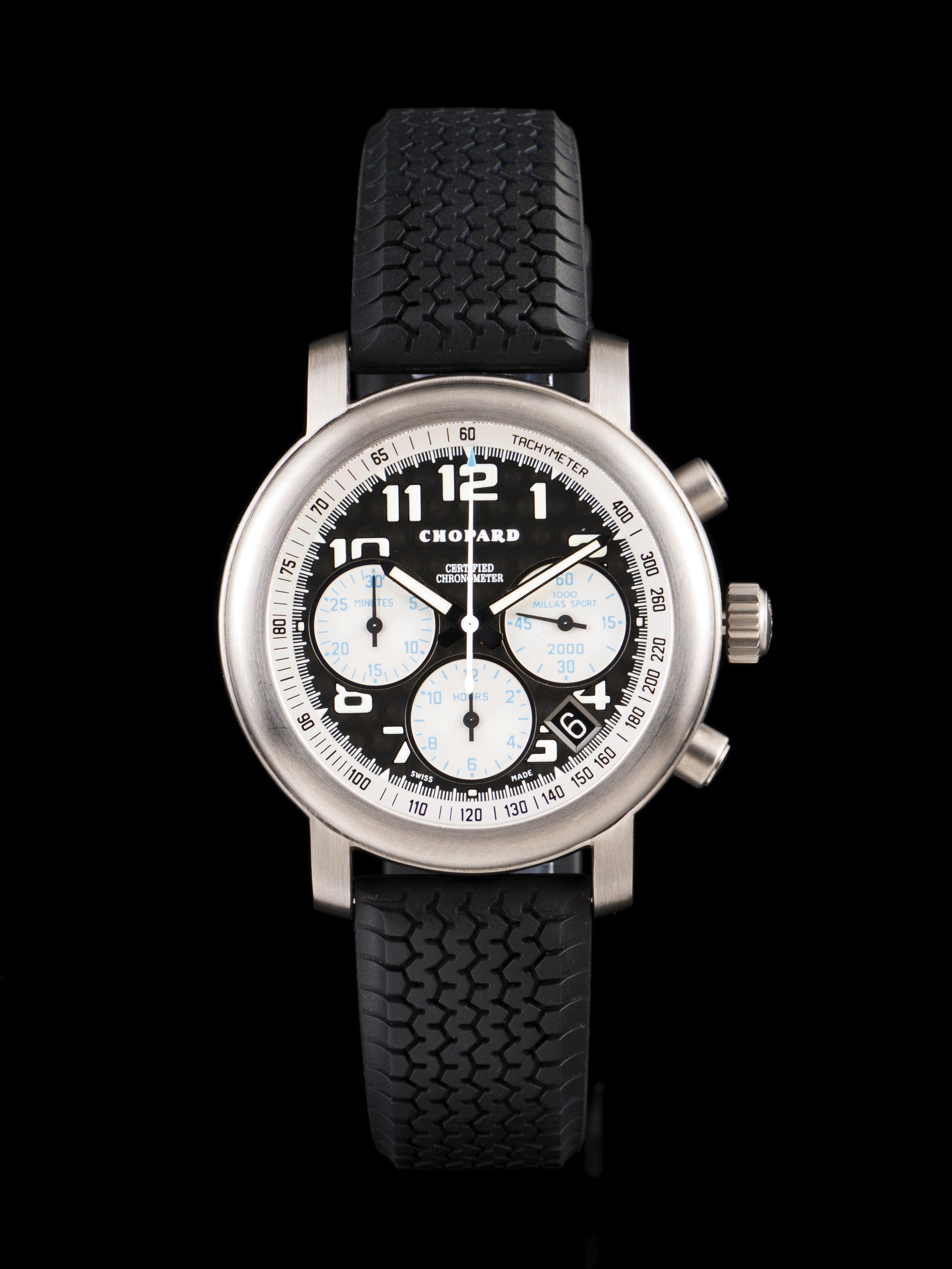 Título Chopard Mille Miglia Descrição Relógio Chopard modelo Mille Miglia com caixa em titânio com 40mm de diâmetro e referência 8407. Movimento mecânico automático chronometre com função de cronógrafo e data. Acompanha caixas, documentos e medidor de pressão. Série de apenas 250 exemplares sendo este o nº77. Em excelente estado com raríssimas marcas de uso. Avaliação do Item Somente para Assinantes Fonte de Pesquisa Somente para Assinantes Data da Pesquisa 17/07/2019