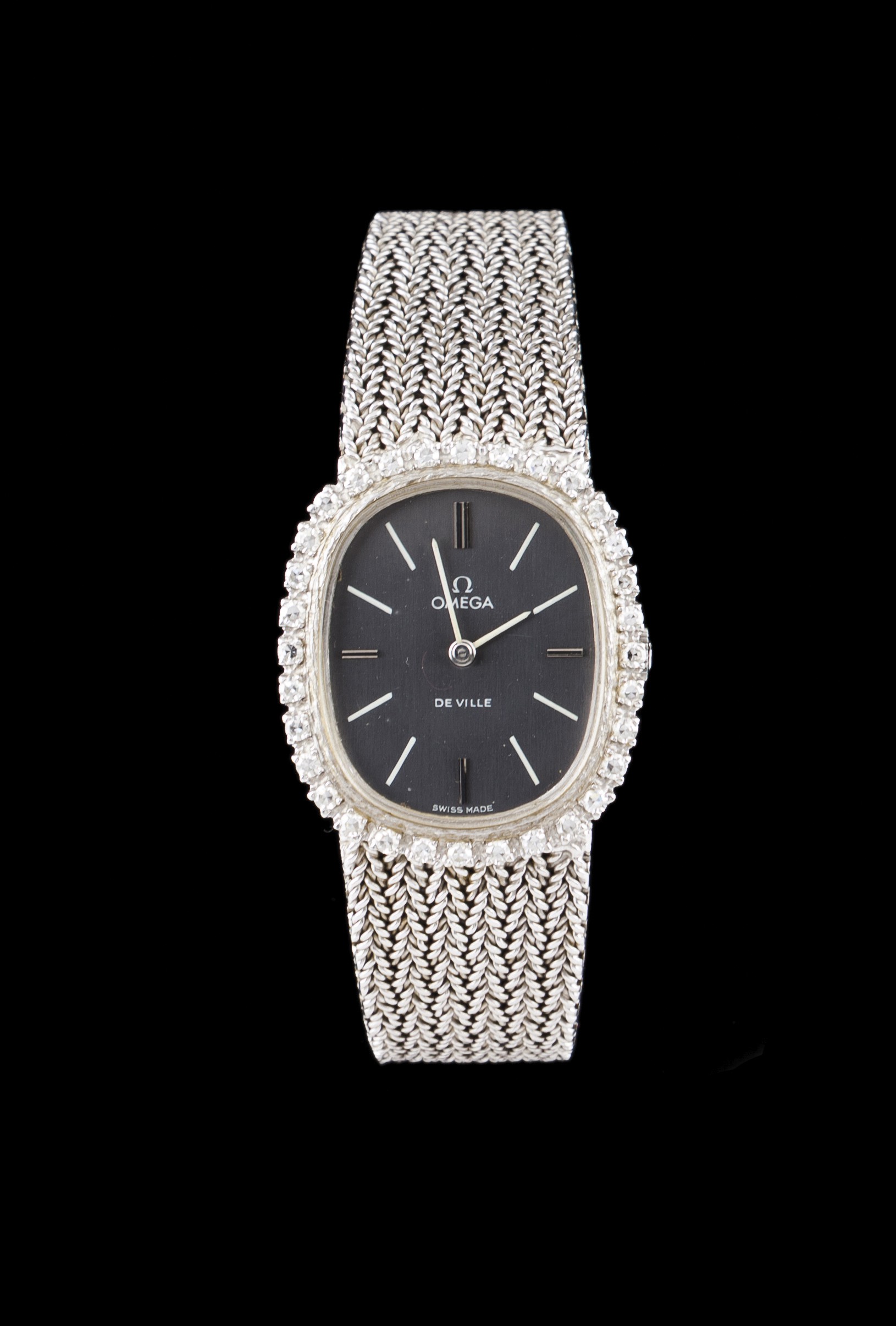 Título Omega de senhora Dimensões 28 cm x 25 cm Descrição Relógio marca Omega de senhora modelo De Ville Movimento mecânico de corda manual Caixa e bracelete embutida integralmente em ouro branco (750/000) Mostrador cinza e bezel com 32 brilhantes Peça de finais dos anos 60, princípios de 70 25x28 cm (caixa) 49,4g (total) Avaliação do Item Somente para Assinantes Fonte de Pesquisa Somente para Assinantes Data da Pesquisa 17/07/2019