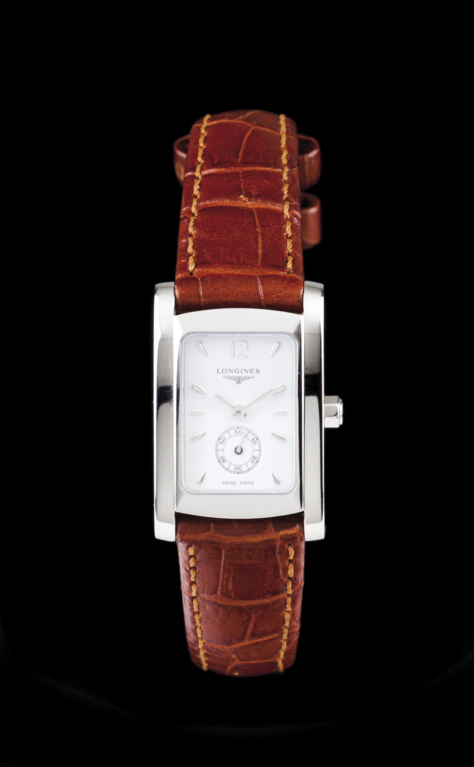Título Longines de senhora Descrição Relógio marca Longines, modelo Dolce Vita, de senhora. Movimento de quartz com segundos às 6h. Caixa em aço com mostrador de cor branca. Bracelete em crocodilo com fivela original. Acompanha estojo e documentos. Em muito bom estado de conservação. 20x24 mm Avaliação do Item Somente para Assinantes Fonte de Pesquisa Somente para Assinantes Data da Pesquisa 17/07/2019