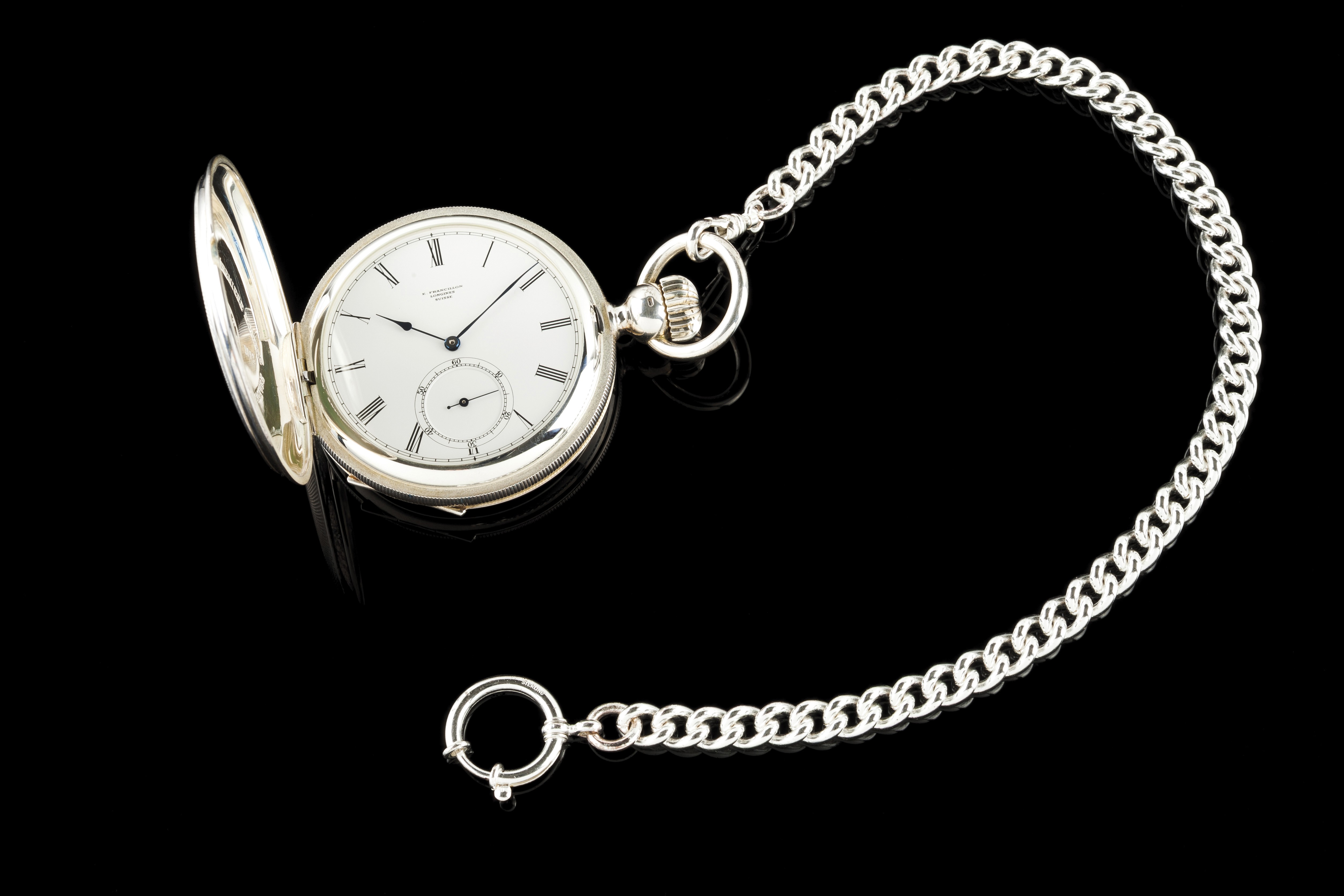 Título Relógio de Bolso Descrição Relógio maraca Longines, modelo E. Francillon de bolso, Com movimento mecânico de corda manual. Caixa em prata (925) Série limitada nº947/1000. Réplica do 1o relógio produzido na manufactura Longines em 1867. Sem uso aparente. Acompanha estojo original. 55 mm 220,8g (total) Avaliação do Item Somente para Assinantes Fonte de Pesquisa Somente para Assinantes Data da Pesquisa 17/07/2019