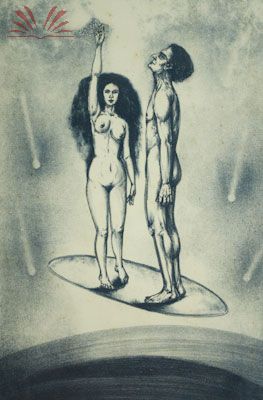 Litografia a cores impressa sobre papel