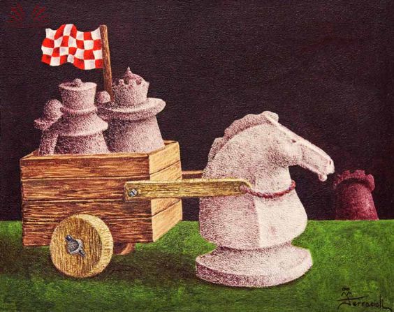 Artista Luiz Carlos Ferracioli - Luis Carlos Ferracioli Título Peças de Xadrez Técnica Óleo sobre tela colada sobre cartão Dimensões 10 cm x 15 cm Descrição Somente para Assinantes Avaliação da Obra Somente para Assinantes Fonte de Pesquisa Somente para Assinantes Data da Pesquisa 23/10/2013