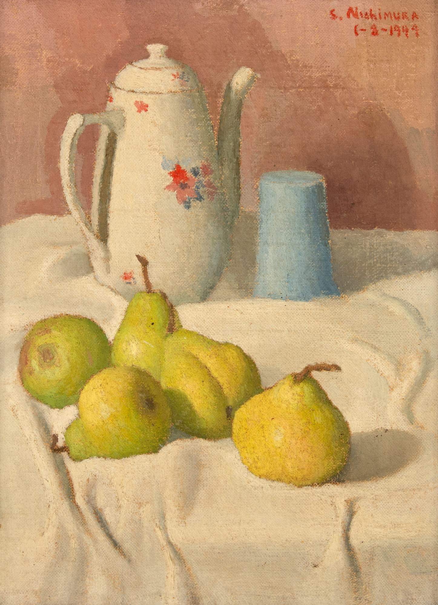 Artista Shigeo Nishimura Título Natureza Morta Técnica Óleo sobre Tela Ano 1949 Década 40 Século 20 Dimensões 33 cm x 46 cm Descrição Shigeo Nishimura Natureza Morta 46 x 33 cm óleo sobre tela assinatura sup. dir. 1949 Carimbo do 15º Salão de Belas Artes. -Crédito da imagem: https://www.leilaodearte.com/leilao/2026/janeiro/283/shigeo-nishimura-natureza-morta-38853/ - Texto transcrito do catálogo do leilão. - Esta obra entrou em leilão com o lance inicial de R$1.000,00 Avaliação da Obra Somente para Assinantes Fonte de Pesquisa Somente para Assinantes Data da Pesquisa 20/01/2026